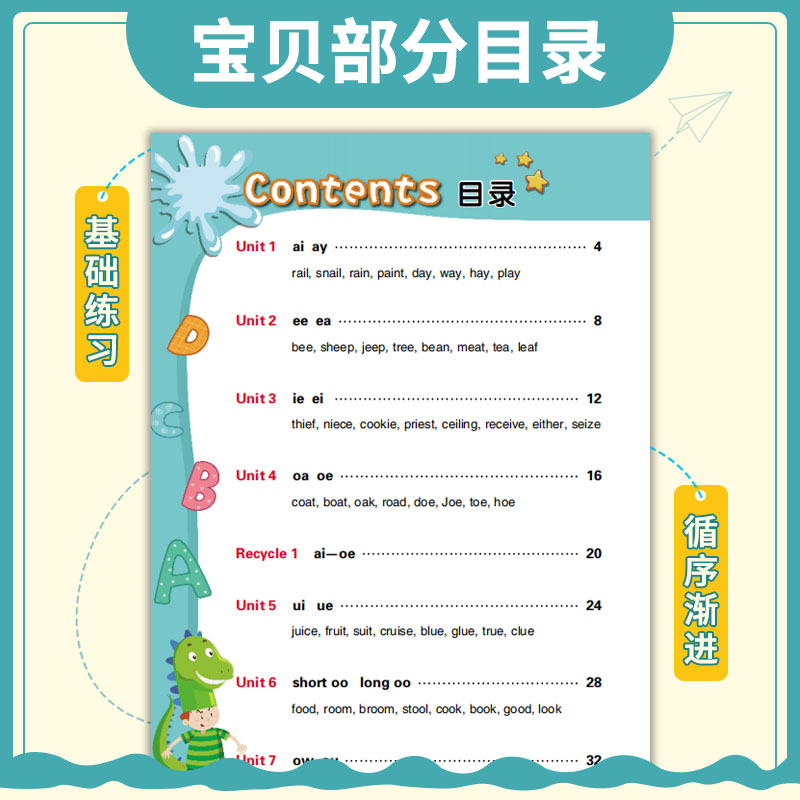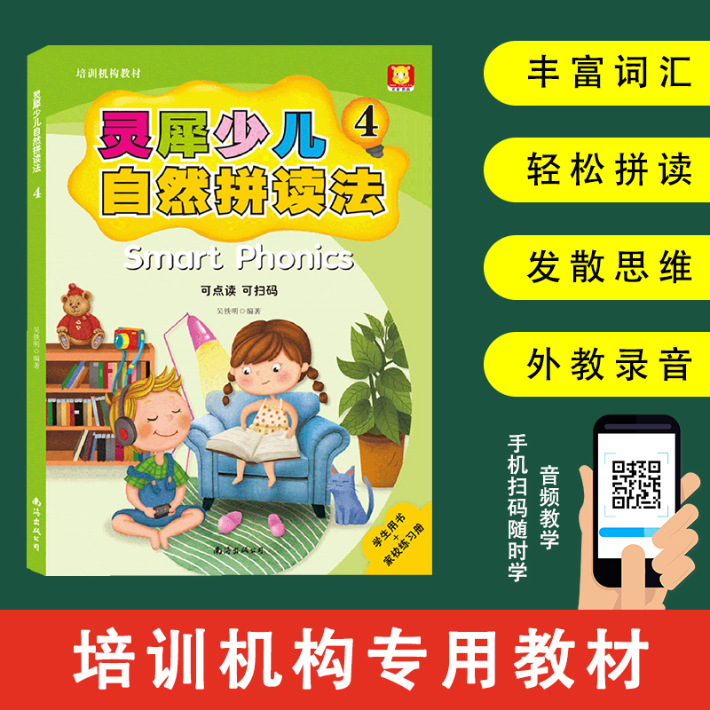 小学生点读书自学教程 练习册小学英语口语少儿英文培训教材 灵犀少儿自然拼读法4套装 课本