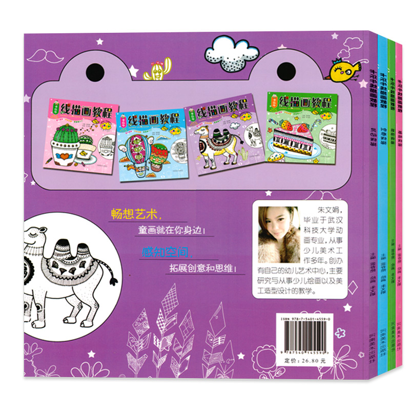 12岁儿童水彩笔油画铅笔美术培训教材 全4册线描画教程卡乐牛基础线描创意线描装 饰线描灵动线描零基础入门分布讲解幼儿绘画书3