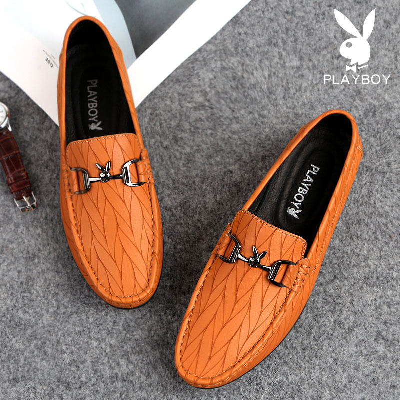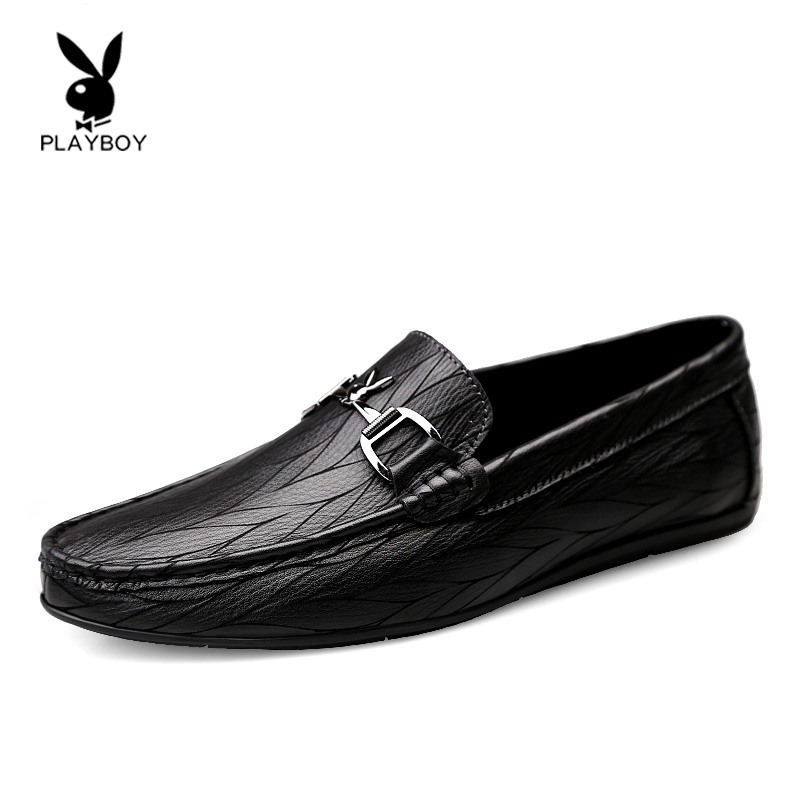 冬季 男潮流百搭鞋 新款 男真皮休闲皮鞋 子男 加绒豆豆鞋 花花公子男鞋