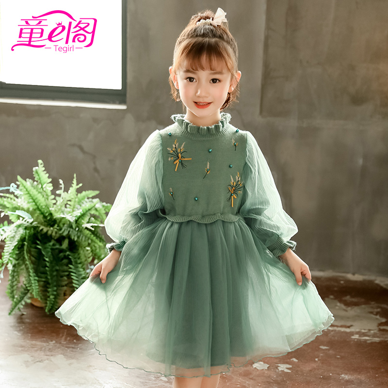 女童针织毛衣蓬蓬裙秋冬儿童小香风加绒裙子中大童公主洋气连衣裙