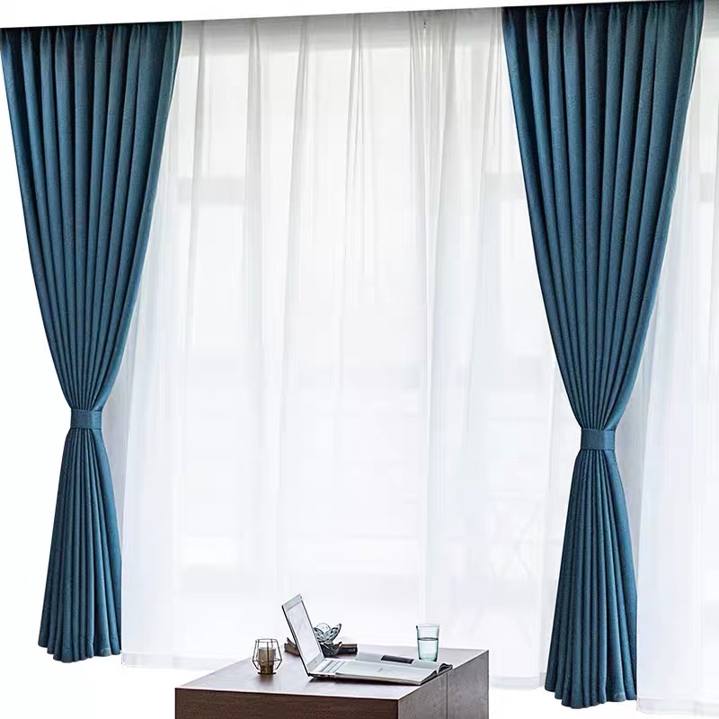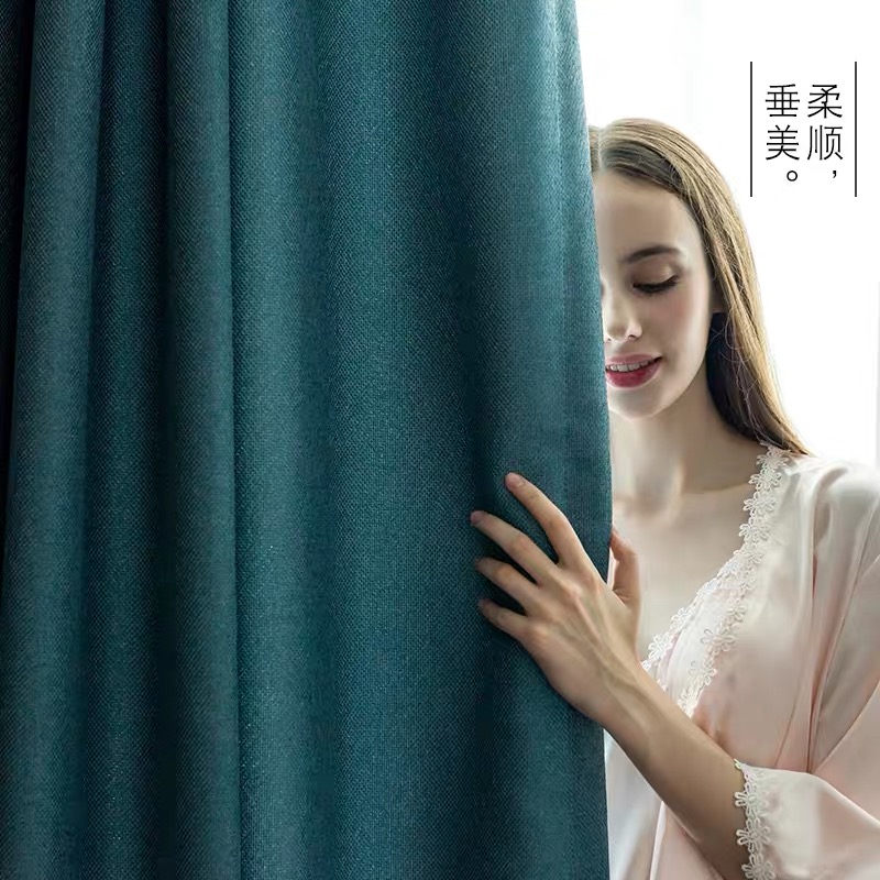 全遮光窗帘北欧简约客厅卧室现代成品定制窗帘布仿棉麻飘窗遮阳光
