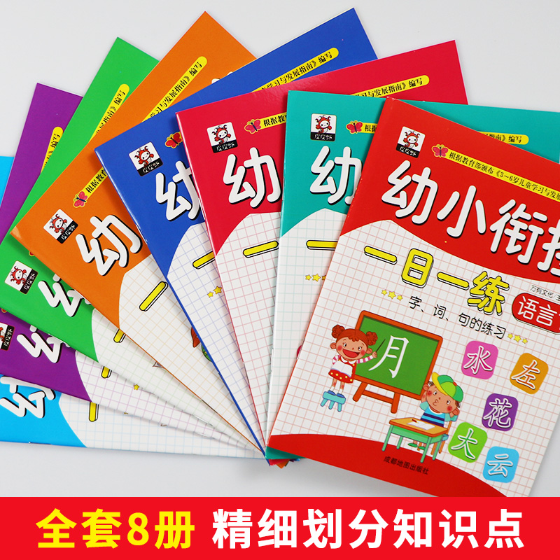6岁幼儿童语文数学启蒙早教图书籍 幼小衔接一日一练 幼儿园学前班宝宝拼音拼读训练练习册幼升小入学准备 全8册语言拼音数学3