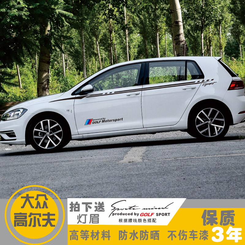 适用于大众高尔夫改装 专用车身车贴腰线车门贴纸汽车拉花饰品彩条