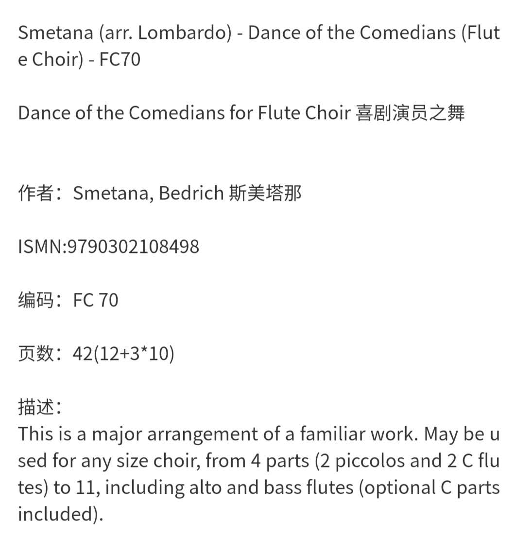 Flute 长笛合奏 Bedrich 乐谱书 斯梅塔纳 Dance for Choir Comedians Alry原版 the Smetana 喜剧演员之舞