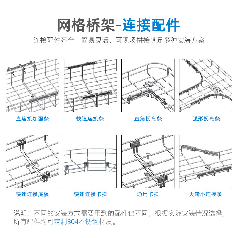 连接卡扣桥架镀锌卡扣开放式 网格线槽连接件304不锈钢卡扣网状桥架弯头拼接配件直连三通四通固定件