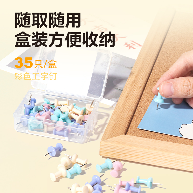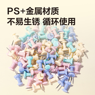 得力彩色工字钉大头钉塑料图钉按钉软木钉墙面钉留言钉便条钉可订diy定制照片图片美工金属钉彩色子墙钉70枚