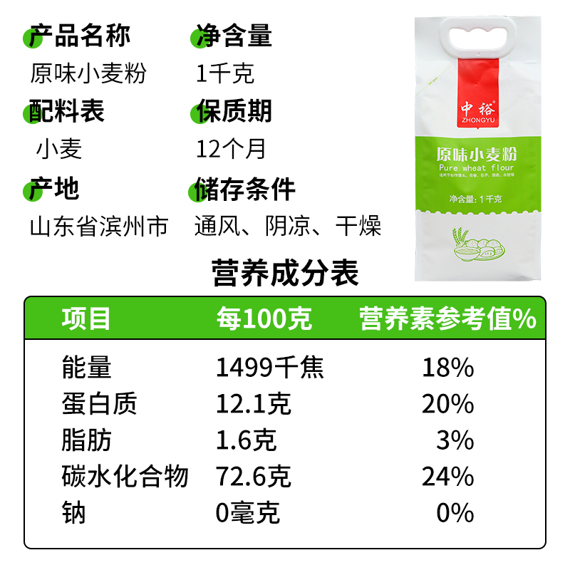 包子饺子馒头饼通用 中筋面粉 家用面食山东 中裕原味小麦粉1kg