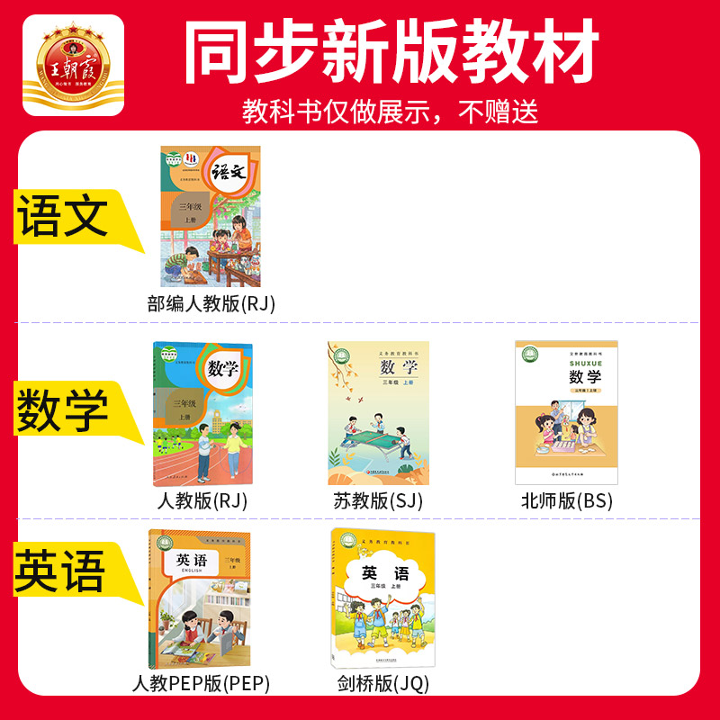 课堂课时分层作业课堂同步专项训练 北师苏教冀教版 2025秋王朝霞小学三年级上册德才兼备语文数学英语套装 同步训练试卷部编人教版
