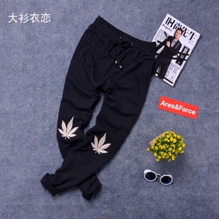 束脚裤 针织裤 休闲运动长裤 特步运动裤 黑色加绒裤 女装 卫裤 子 女秋季