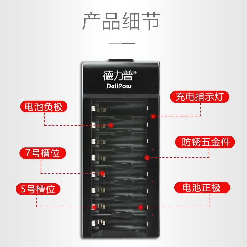 德力普5号7号充电电池充电器智能转灯快充8槽五七号通用急速充电