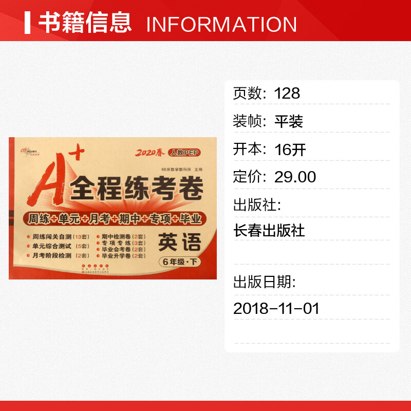 2020 新华正版 英语6年级·下 正版 长春出版 新华书店旗舰店文轩官网 68所助学图书 社 全程练考卷 书籍 人教PEP