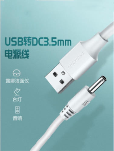 中粤圆孔充电线器3.5mm圆头供电台灯音响箱小风扇洁面通用usb转dc5v电源数据线适用foreo露娜luna洗脸仪mini2
