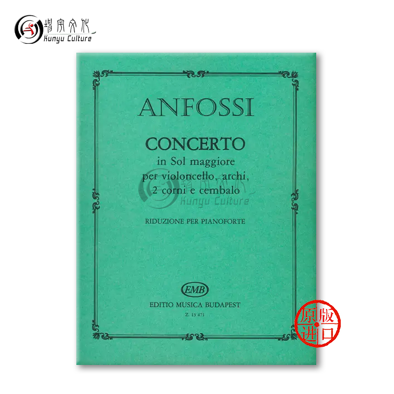 大提琴和钢琴 Anfossi 乐谱书 艾弗西 Strings Horns Cello 布达佩斯原版 Major Z13471 Harpsichord Concerto G大调协奏曲