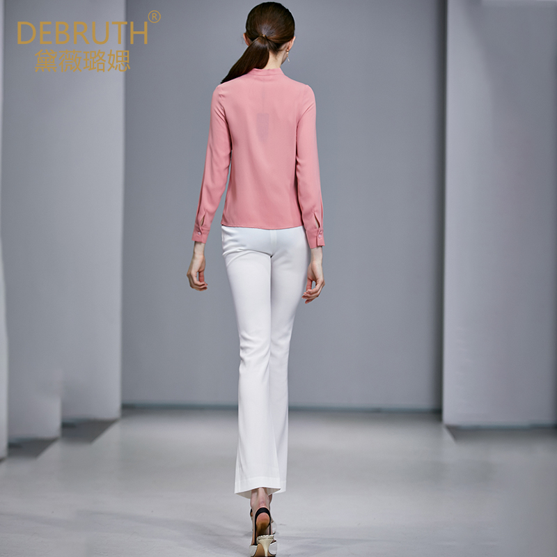 配微喇长裤 2件套裤 女春季 气质商务时尚 新款 粉色小立领荷叶领衬衫