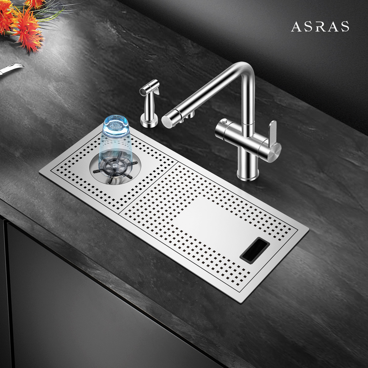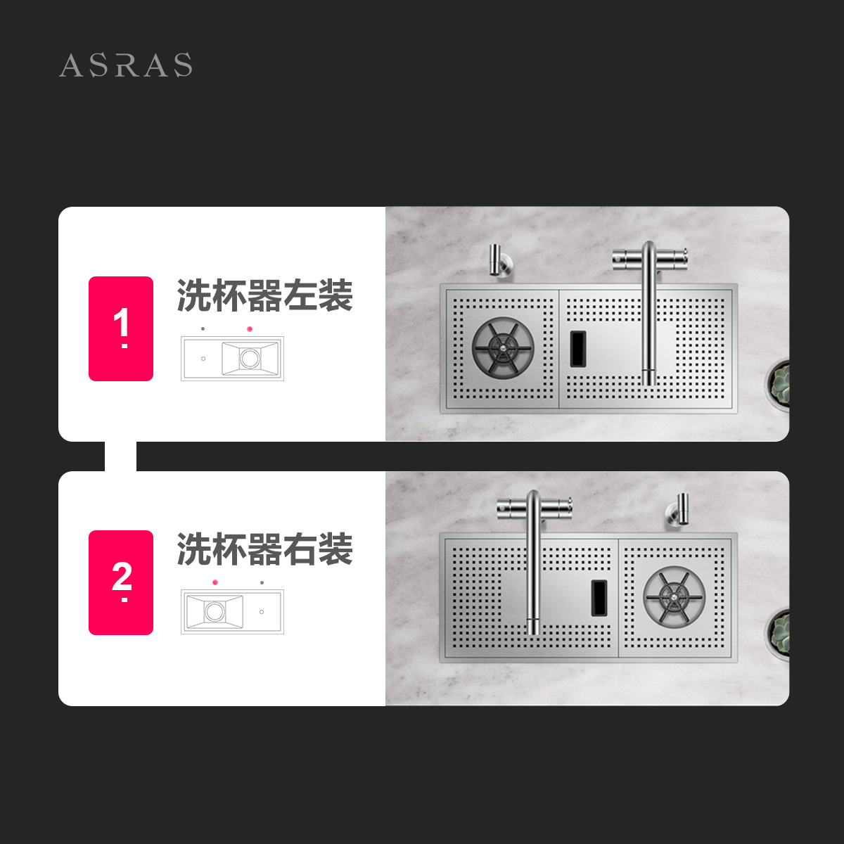 阿萨斯不锈钢洗杯器水槽套餐高压喷水自动奶茶咖啡厅酒水吧台单槽