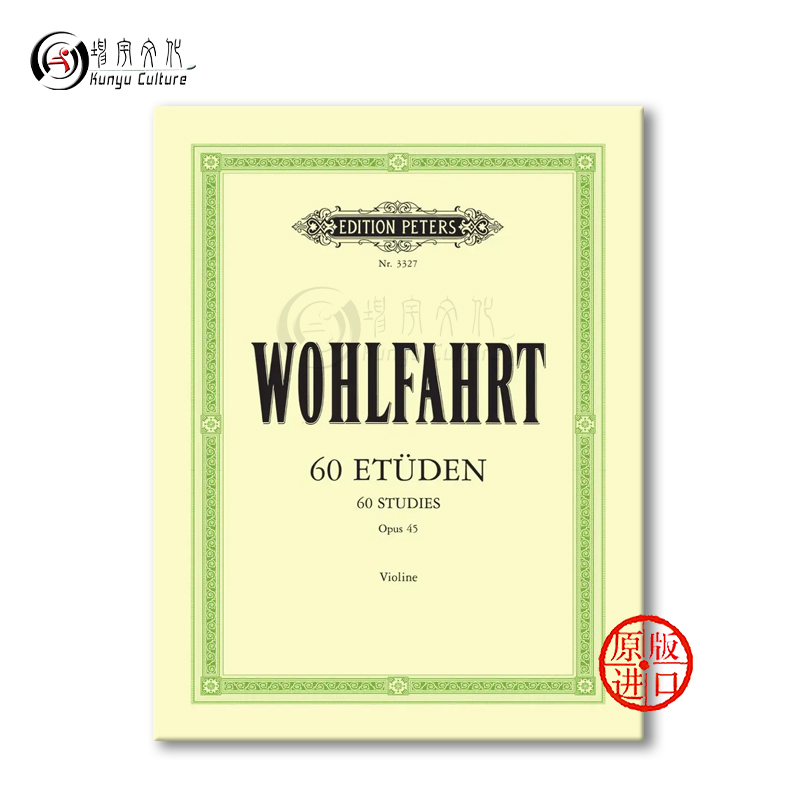 进口乐谱书 Wohlfahrt Studies 沃尔法特 Violin 彼得斯原版 for EP3327 60首小提琴练习曲op45