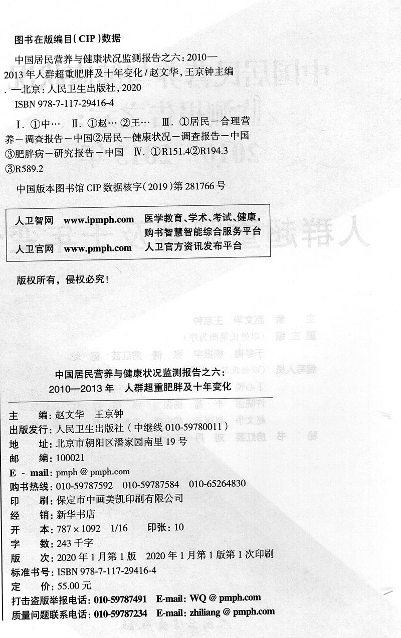 中国居民营养与健康状况监测报告之六2010—2013年 人民卫生出版 人群超重肥胖及十年变化 王京钟 社 赵文华 现货