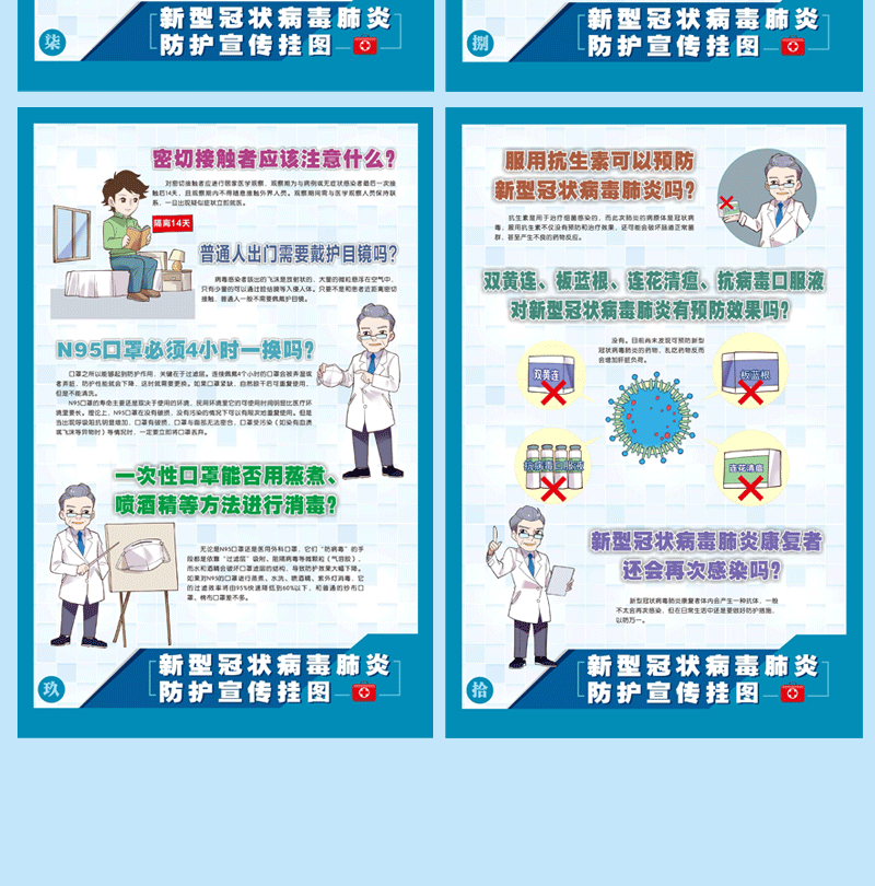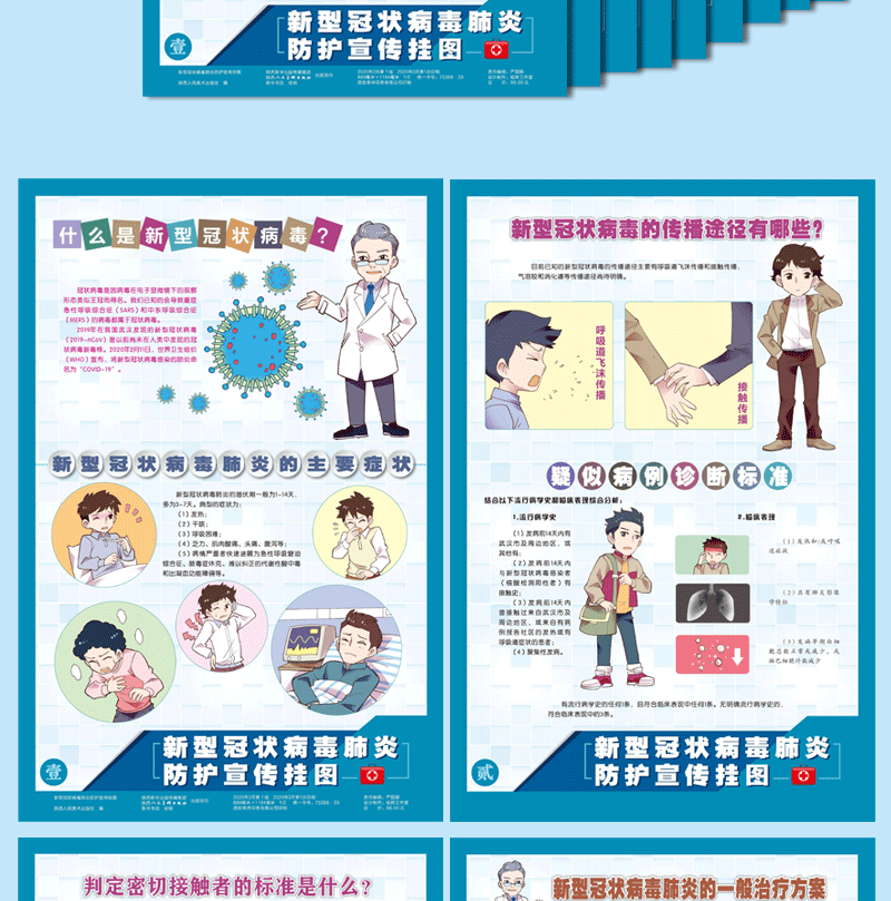 新型冠状病毒肺炎防护宣传挂图10张 套预防控抗击疫情工厂企业机关社区街道居委会中小学校复学复工标语画橱窗栏墙贴海报手册标语