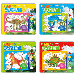 书童 幼儿童画画本3 全四册 8岁恐龙涂鸦涂色彩绘画益智图画本填色本画涂颜色绘画册 恐龙彩绘