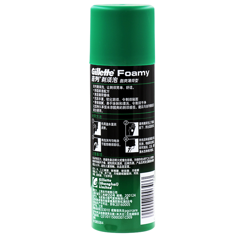 吉列剃须泡沫激爽薄荷210g送清新柠檬型50g 刮胡泡沫刮胡膏 男士