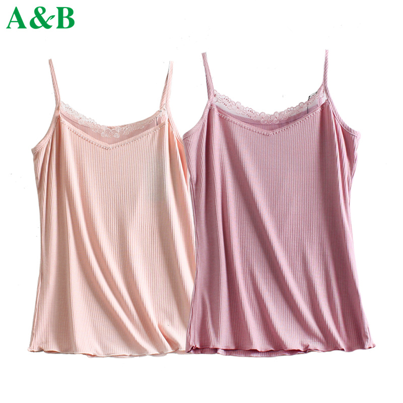 外穿内搭蕾丝边夏季 AB吊带螺纹背心女莫代尔女士打底衫 黑白色修身