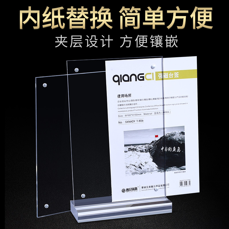 亚克力台卡架台牌桌牌A4双面透明T型强磁台签POP展示牌餐牌808价格牌A3桌面菜单牌A5桌签标牌酒水牌A6立牌t型
