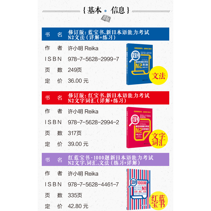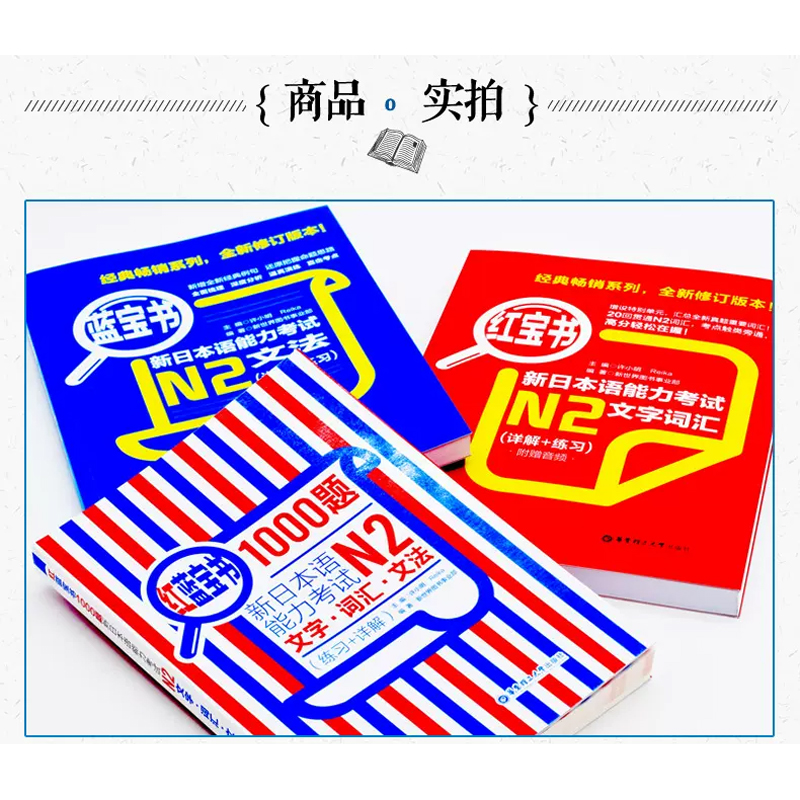 文法 红蓝宝书1000题新日本语能力考试N2文字词汇 练习 经典 新日语能力测试N2级日语考试书籍 日语N2蓝宝书 红蓝宝 红宝书