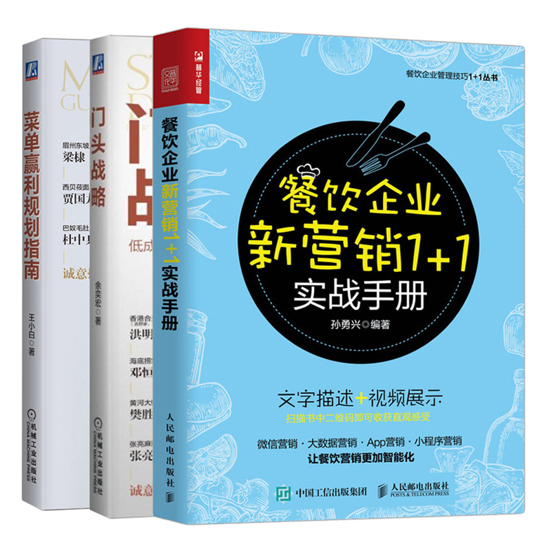 1实战手册 餐饮企业经营销售书 门头战略低成本餐饮旺铺 共3本 餐饮定位营销策略技 菜单赢利规划指南 餐饮企业新营销1