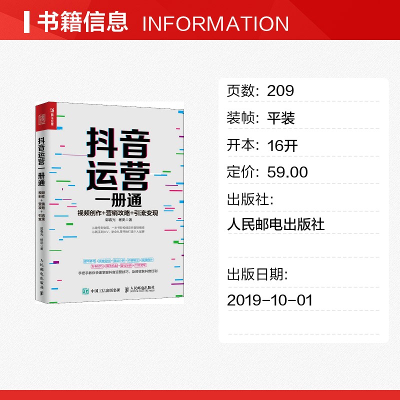 广告营销经管 视频创作 杨岚 抖音运营一册通 励志 人民邮电出版 引流变现 图书籍 营销攻略 社 郭春光 新华书店正版 著