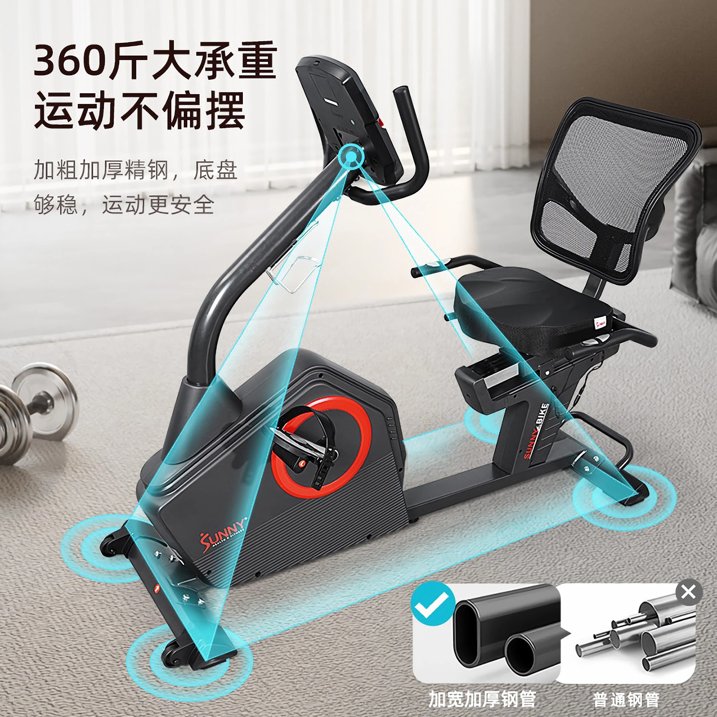 美国SUNNY卧式 健身车家用康复脚踏车自行车训练器椭圆机护膝静音