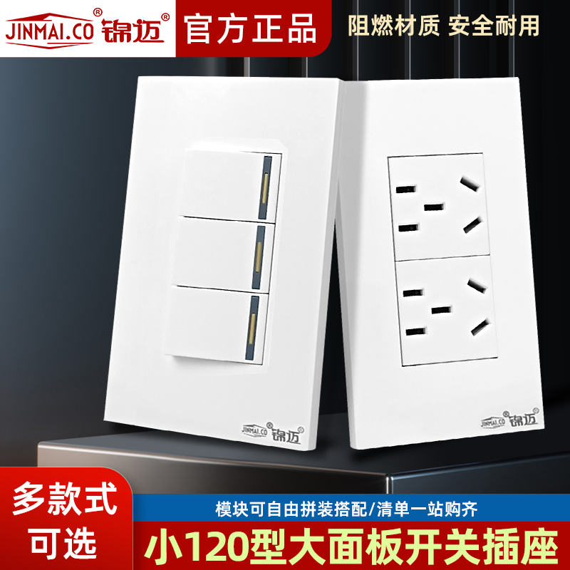 锦迈120型开关插座一二三五孔16A三孔电脑电话电视全套配齐可118