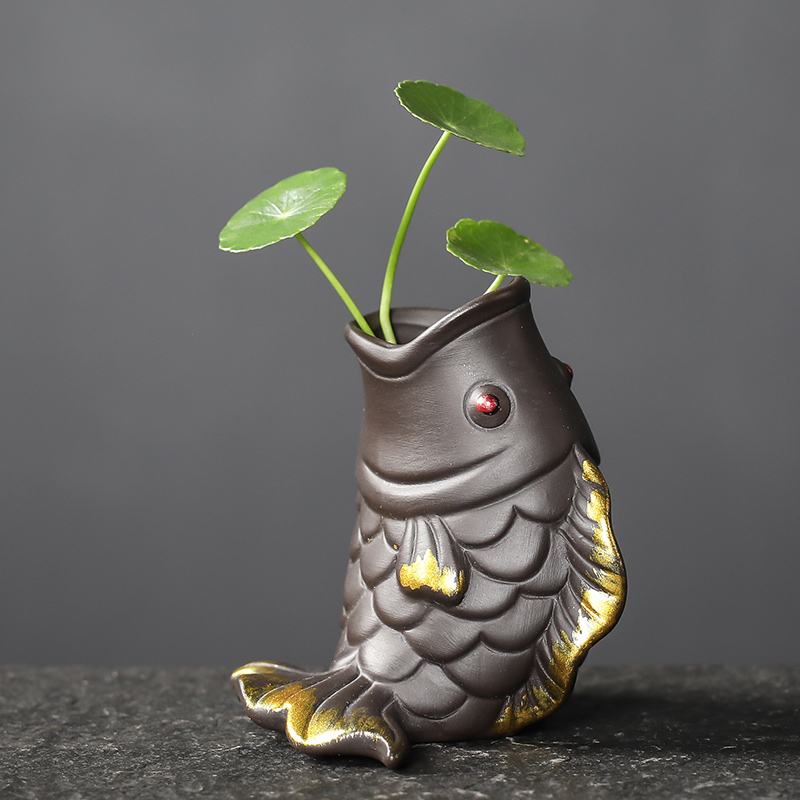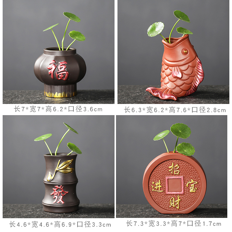 宇轩 指尖小花器福到茶宠紫砂紫创意泥彩绘花瓶迷你禅意茶艺摆件