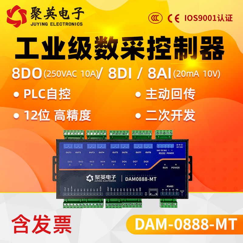 聚英8路继电器控制模块开关量模拟量采集RS232RS485WiFiDAM0888MT