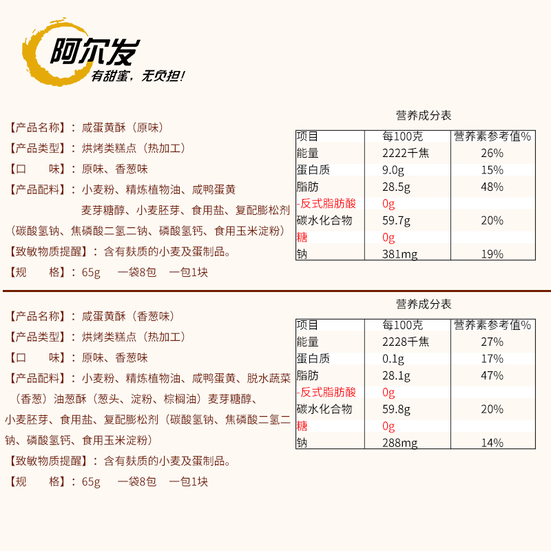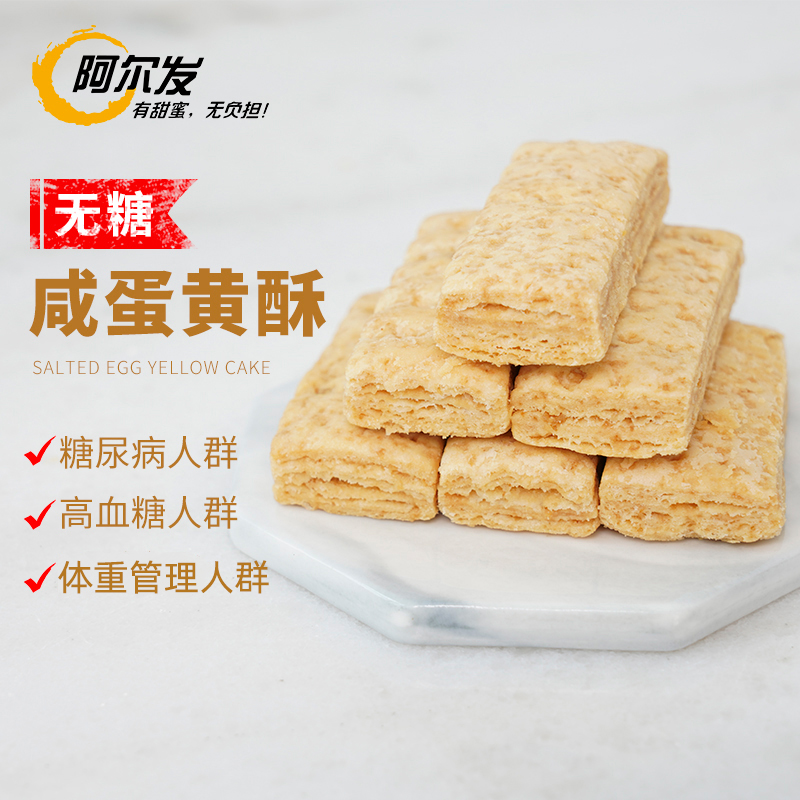 阿尔发 糖尿饼人办公室网红休闲零食 无糖食品咸蛋黄酥千层酥饼干