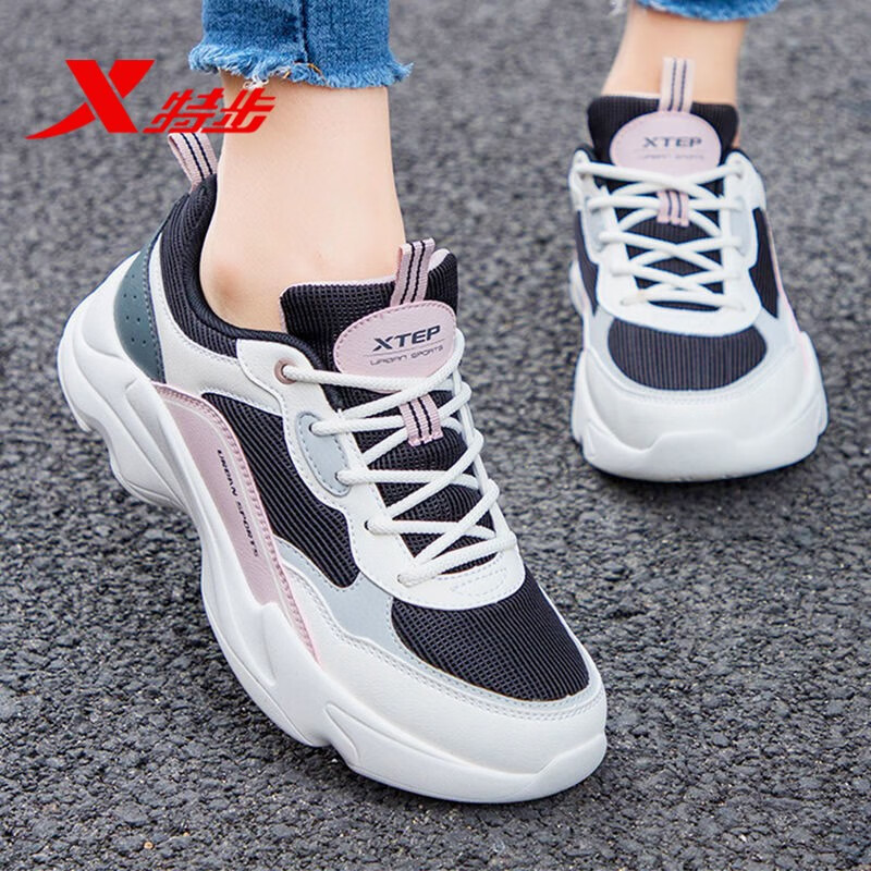 网鞋 夏季 黑白跑步鞋 子官方旗舰店透气运动鞋 特步女鞋 女款 2025新款