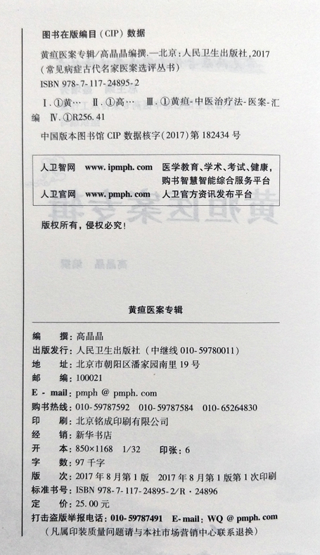 社 黄疸医案专辑 人民卫生出版 高晶晶编撰 9787117248952 常见病症古代名家医案选评丛书