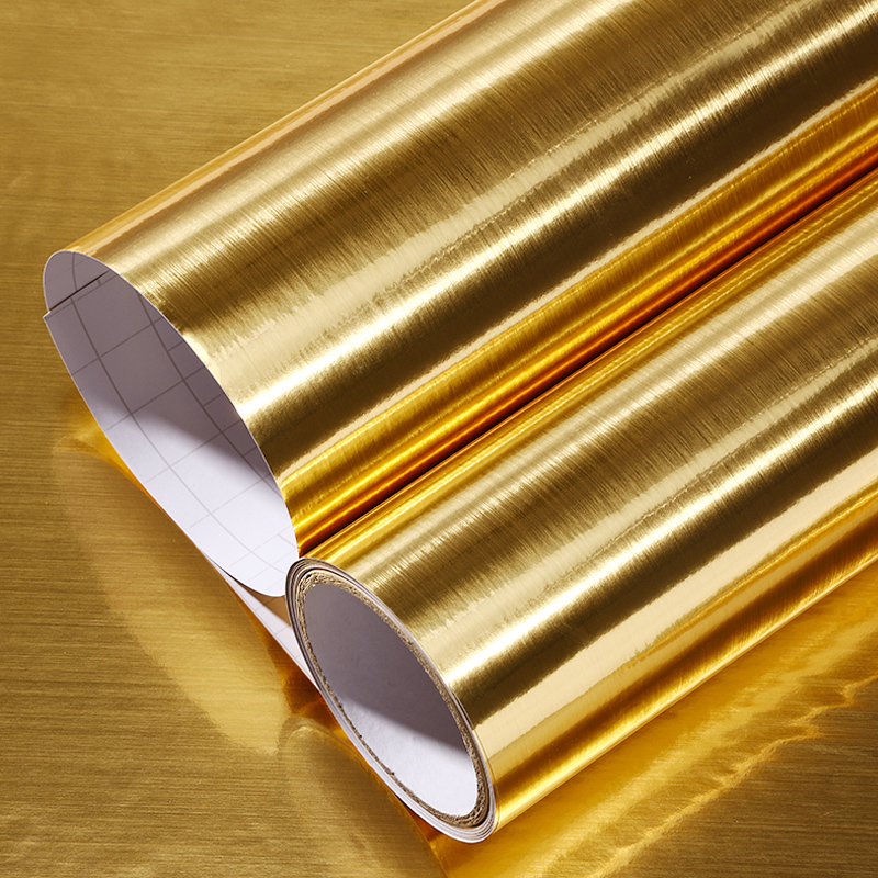 反光贴纸金属不锈钢金色自粘金箔墙贴墙面装 饰烫金拉丝金镜面贴条