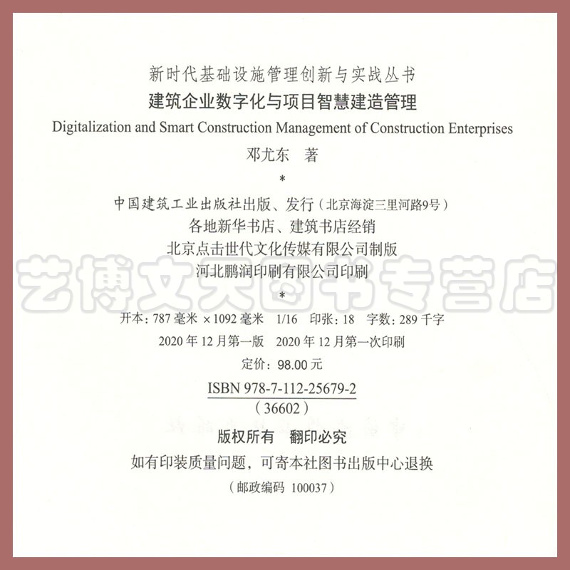 中国建筑工业出版 邓尤东 社9787112256792 新时代基础设施管理创新与实战丛书 建筑企业数字化与项目智慧建造管理