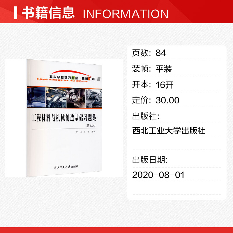 第2版 西北工业大学出版 正版 新华书店旗舰店文轩官网 社 书籍 工程材料与机械制造基础习题集