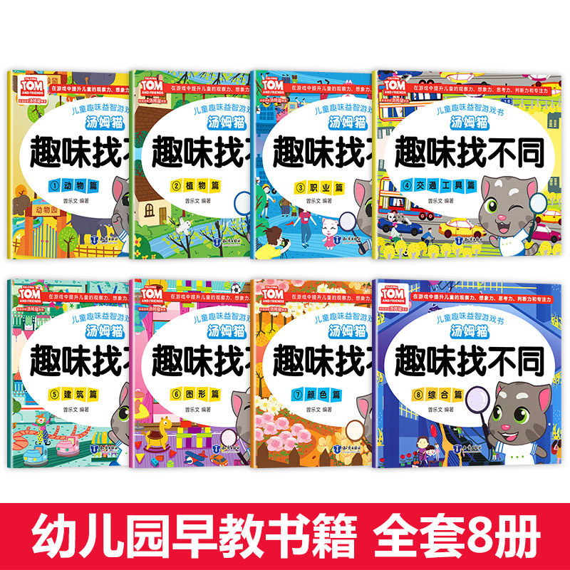 全套8册 找图案找茬 益智早教儿童3 6岁幼儿图书 书思维训练宝宝幼儿园书籍中班4岁智力开发书 汤姆猫趣味找不同专注力训练