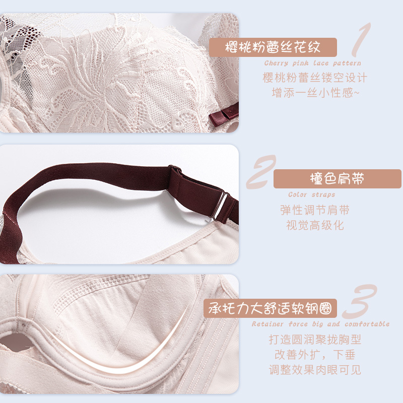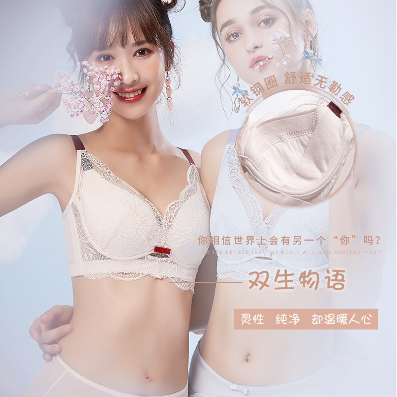 内衣女士小胸聚拢显大调整型无钢圈收副乳防下垂薄款 品牌文胸罩夏