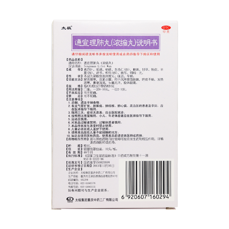 盒 太极 64丸 浓缩丸 感冒咳嗽打喷嚏流鼻涕鼻塞风寒 通宣理肺丸
