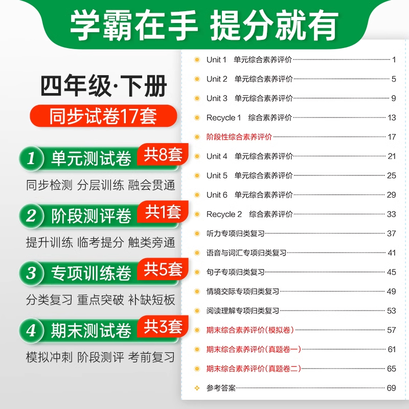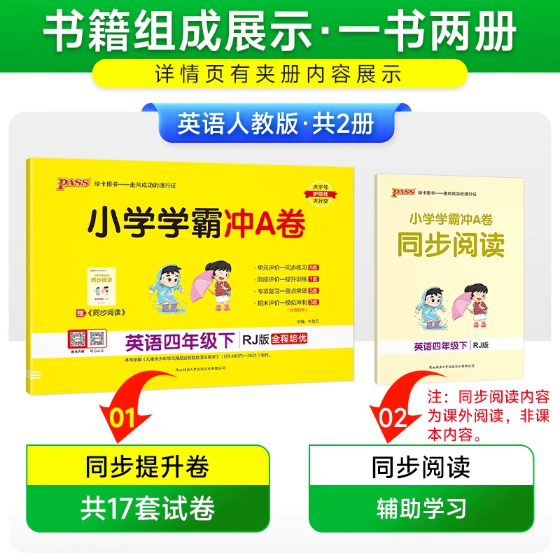 2025春适用pass绿卡小学学霸冲A卷四年级下册英语RJ人教版 卷期中末试卷专项提升四下达标卷答题卡全解读训 同步阅读4年级下同步单元