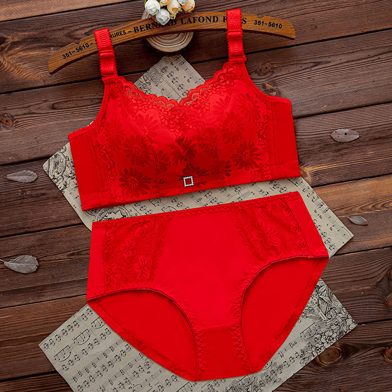 结婚新娘小胸内裤 无钢圈厚款 胸罩 聚拢正品 本命年大红色内衣女套装