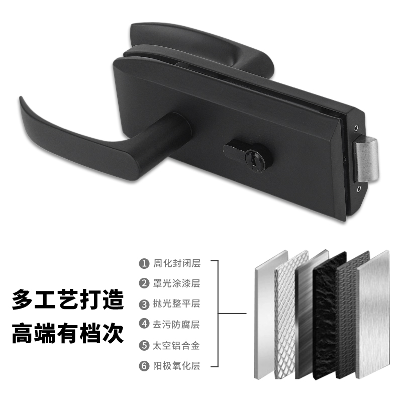 办公高隔断玻璃门执手锁单开门双开门锁缺口执手锁把手锁玻璃门锁