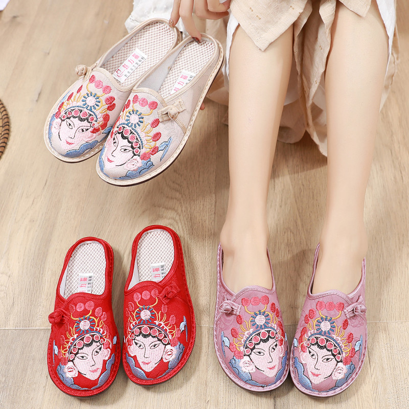 女中国风妈妈鞋 老北京布鞋 软底防滑凉拖 外穿包头拖鞋 民族风绣花鞋