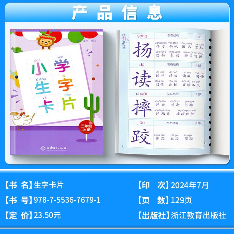 社小学3年级上册语文同步练习汉语学习生字卡片教材辅导书籍配套新改版 现货2026新版 浙江教育出版 三年级上册 课本 小学生字卡片