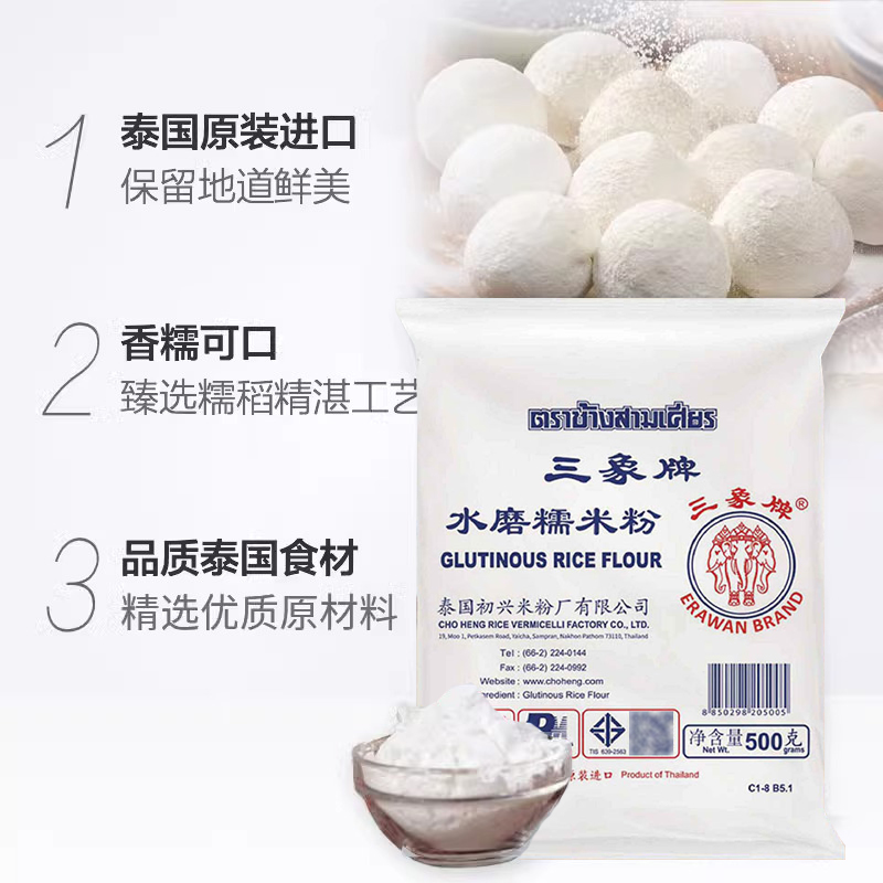 泰国进口三象牌正宗纯水磨糯米粉粘米粉家用汤圆冰皮月饼商用批发