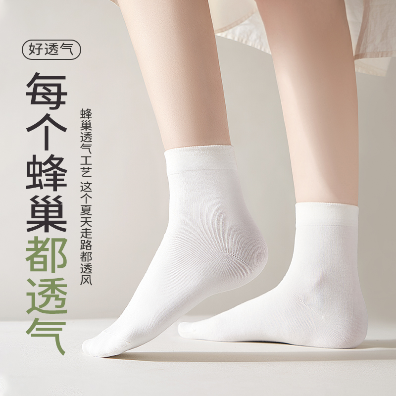 女士无骨月子袜白色中筒全棉袜 纯棉防臭短袜2025新款 袜子女款 秋季