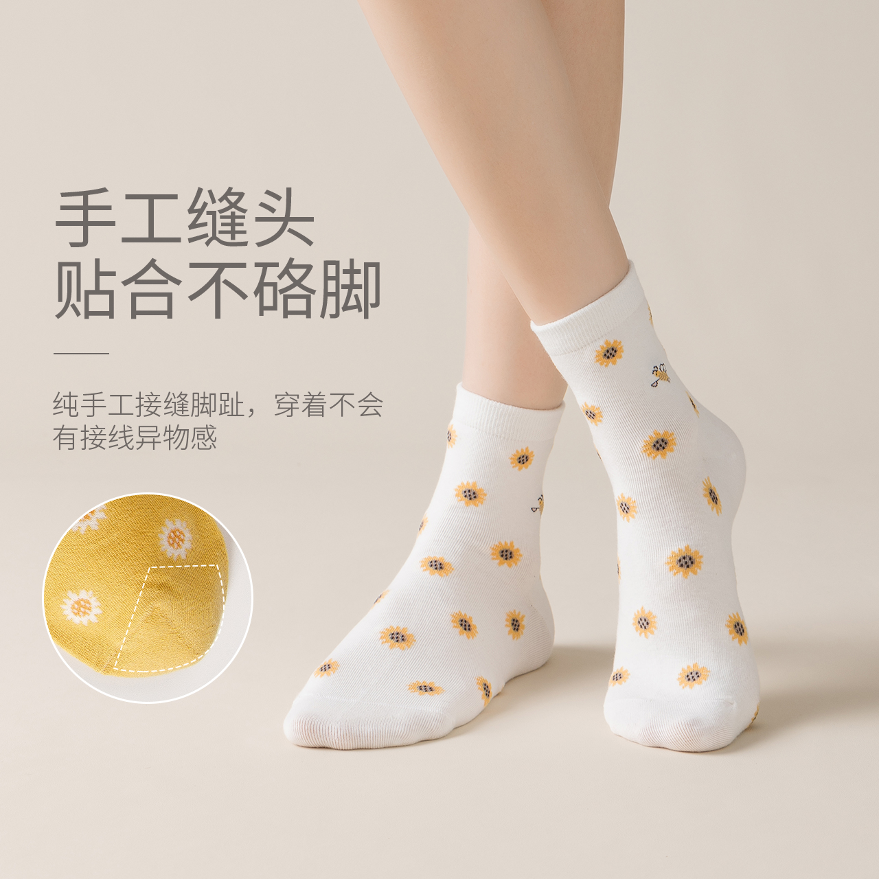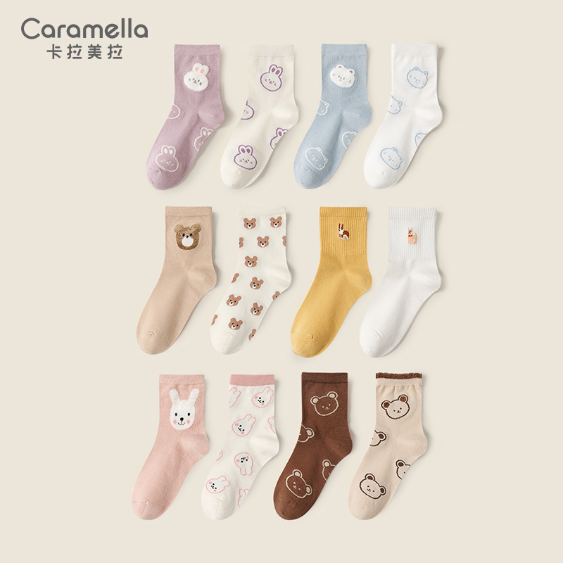 caramella袜子女中筒袜秋冬纯色短袜可爱卡通棉袜学生棉袜子2双D